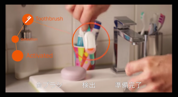 モーションクッキーを歯ブラシにつけると、どれだけ歯磨きをしたかを知ることができます。