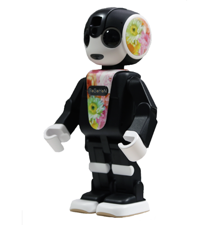 花柄を装着したロボホンは、キュートでガーリーなロボホンちゃんです。