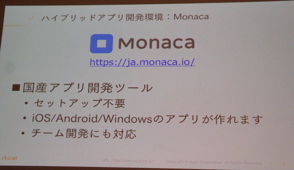 アシアルのジャスティス岡本さんからは、セットアップ不要な国産の開発ツール「Onsen UI / Monaca」がハッカソンで強い10の理由を紹介いただきました。