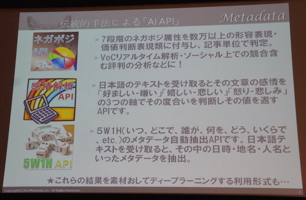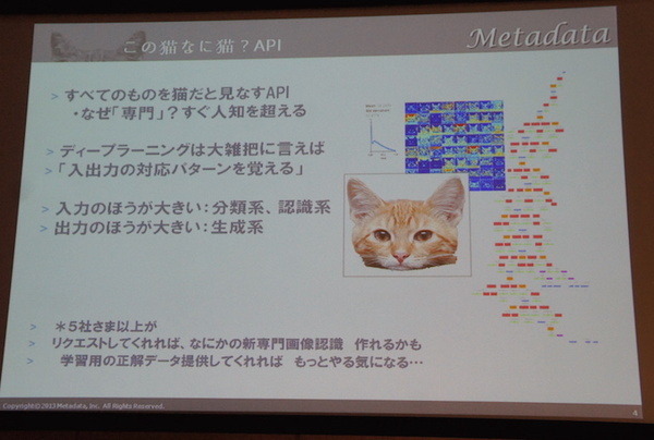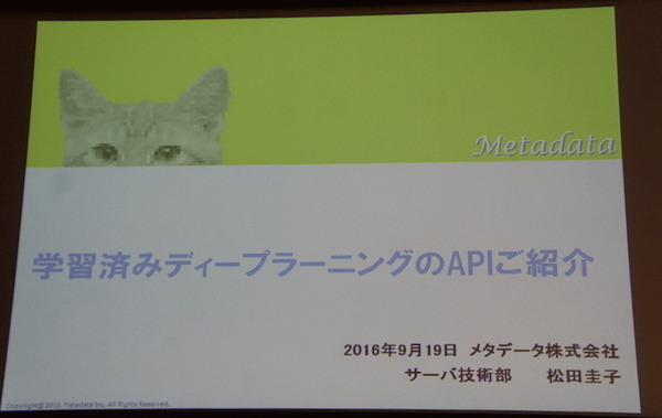 メタデータの松田さんからは、学習済みディープラーニングAPIを紹介いただきました。