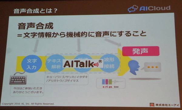 エーアイの木下さんからは、日本語音声合成APIのAITalk WebAPIをご紹介頂きました。