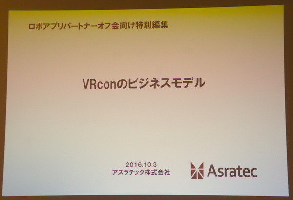 アスラテック羽田さんからは「VRconのビジネスモデル」の発表です。
