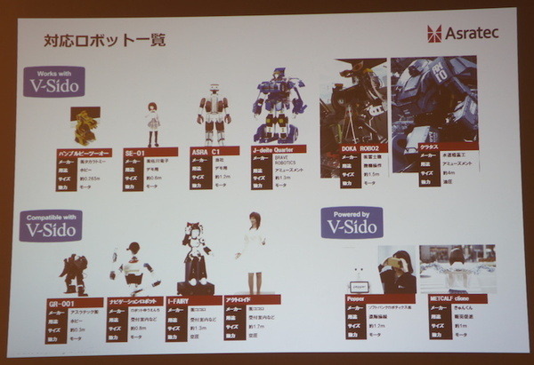 V-Sidoについては、対応ロボット一覧と記事をご覧ください。