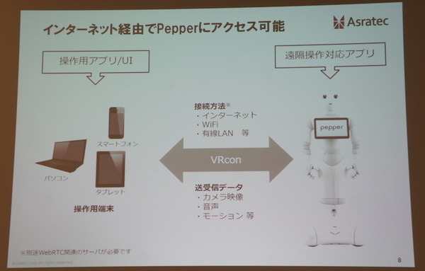 アスラテックがPepper遠隔操作システム「VRcon for Pepper」を開発
