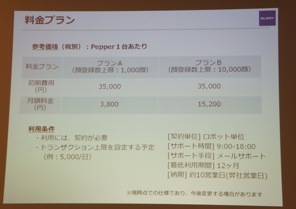 料金プランです。こちらは現時点での参考価格となり、今後変更する場合があるのでご注意下さい。