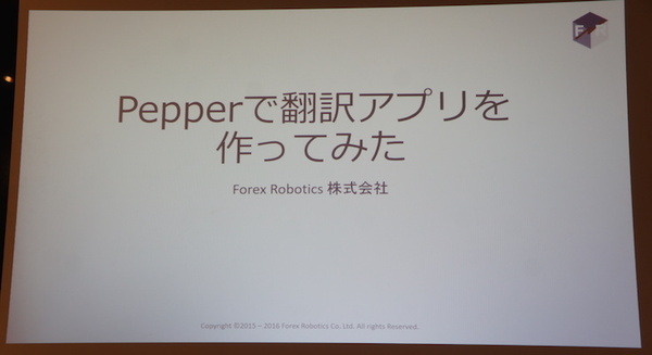 Forex Robotics高橋さんからは、Pepperで5ヶ国語翻訳アプリを作ってみたときの話です。