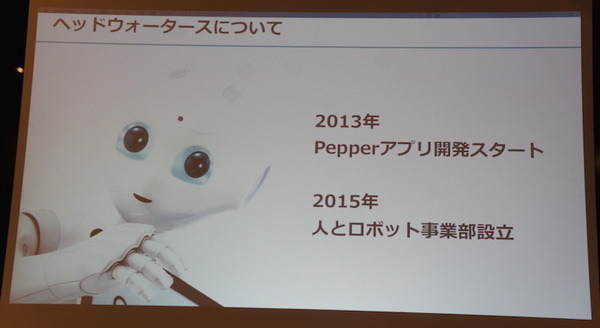 ヘッドウォータースの紹介です。2013年からPepperアプリ開発をスタートし、2015年に「人とロボット事業部」を設立しました。