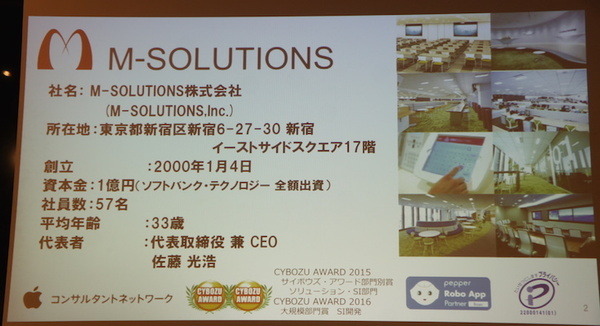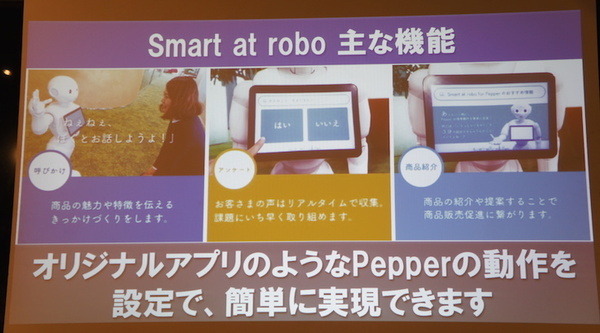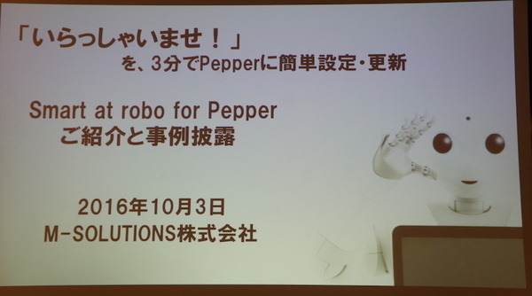 M-SOLUTIONS 小橋さんからは、Smart at robo for Pepperの紹介です。