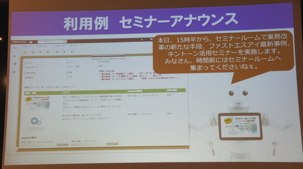 利用例として、ある時間になったらPepperのタブレットに画像を表示させてアナウンスをさせるなどがあります。