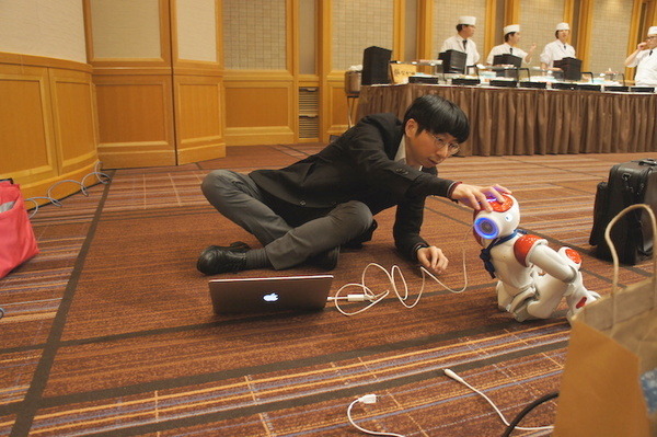 レセプション開始後すぐにロボットには人だかりが (photo by 本田正浩(たからのやま))
