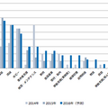 ジャンル別の新規開発サービスロボットの機種数について、2014年以降の年間推移を示したものが図3となる(2016年は予測値)。