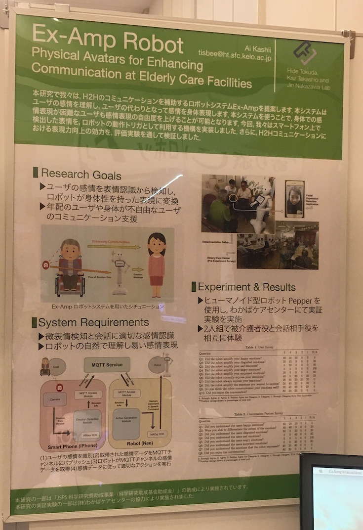 半年かけて取り組んできた研究結果と、人とPepperによる漫才動画11本が展示されていました。
