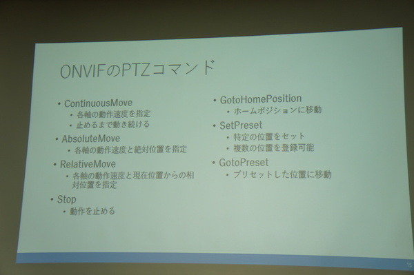 羽田野さんが考えるロボットアームに近い標準規格は「ONVIF(Open Newwork Video Interface Forum)」。一言で言うとネットワークカメラの標準プロトゴルです。