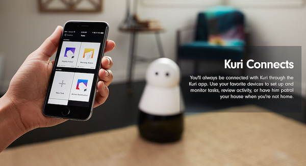 Kuriは家庭内で活躍するコミュニケーションロボット。本体の下部にはタイヤが付いており、移動することが可能なようです。