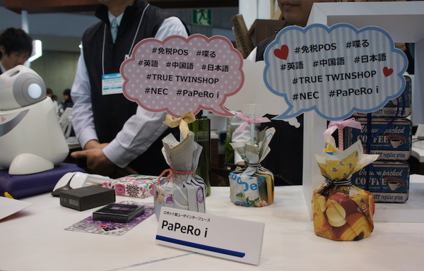 ロボット型インターフェイスのPaPeRo iが日英中の三ヶ国語で対応をしてくれるというものです。