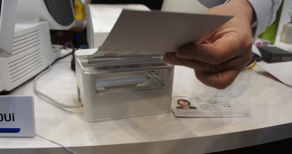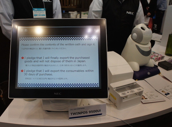 レジの横にある読み取り機にパスポートをかざすとどの国の人かを識別し、その国の言葉でPaPeRo iが会計の対応をしてくれるというもの。こちらは参考出展です。
