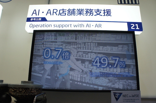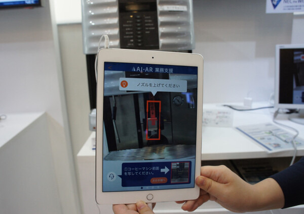 AIとARを活用した店舗業務支援です。会場ではコンビニに設定されているコーヒーメーカーにトラブルが起こったケースが展示されていました。