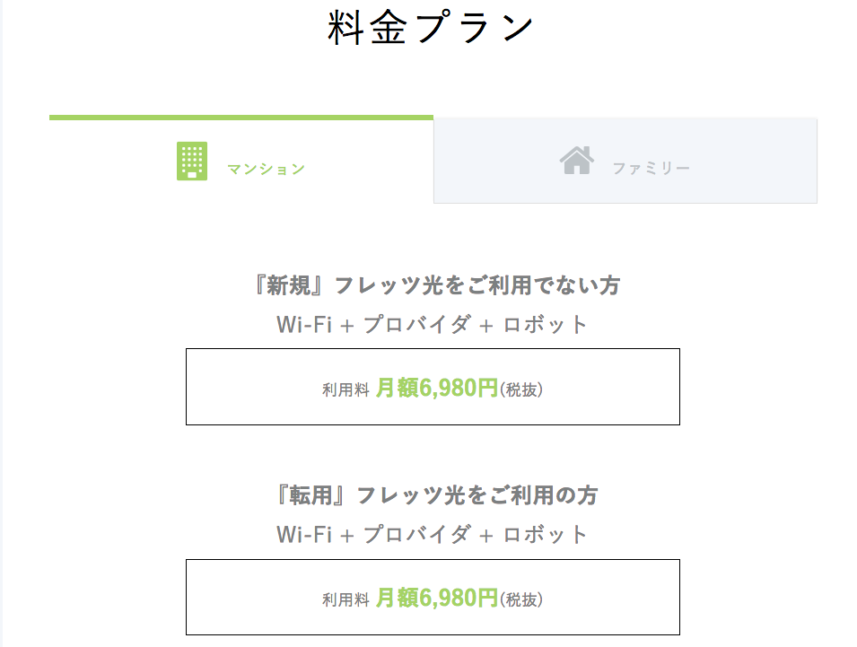 今日正式オープンしたWebサイトには、シチュエーション別の料金プラン(戸建て/マンション・新規/転用)やオプション料金も載っています。
