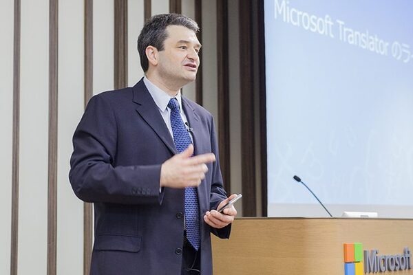 「今日も同時通訳の方に来て頂いていますが、Microsoft Translatorは通訳の仕事を置き換えるためにリリースするのではありません。残念ながら機械には情緒豊かな翻訳や状況に応じた通訳はできず、まだまだ人間には叶いません。