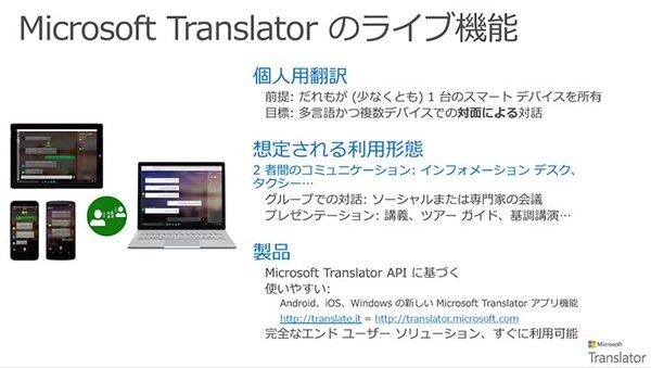 また、更にそれを組み込んだ「Microsoft Translator ライブ機能」のリリースも発表した。