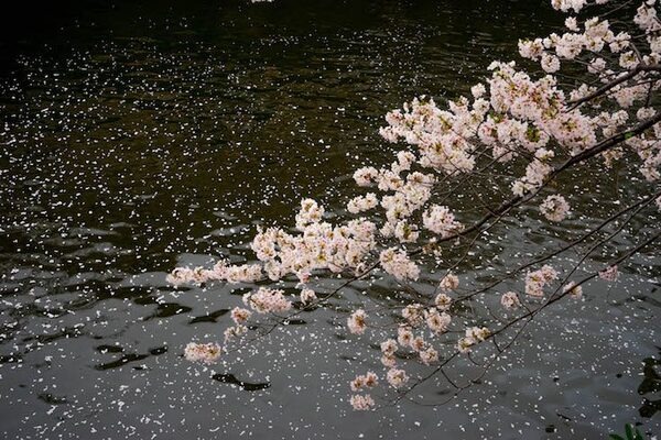 Photo: 川面には桜の花びらが散っており、これも風流です。