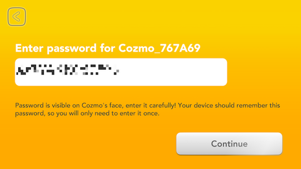 COZMOのパスワードを入力する必要がでてきます。これは、COZMOの顔に表示されるパスワードを入力するものです。