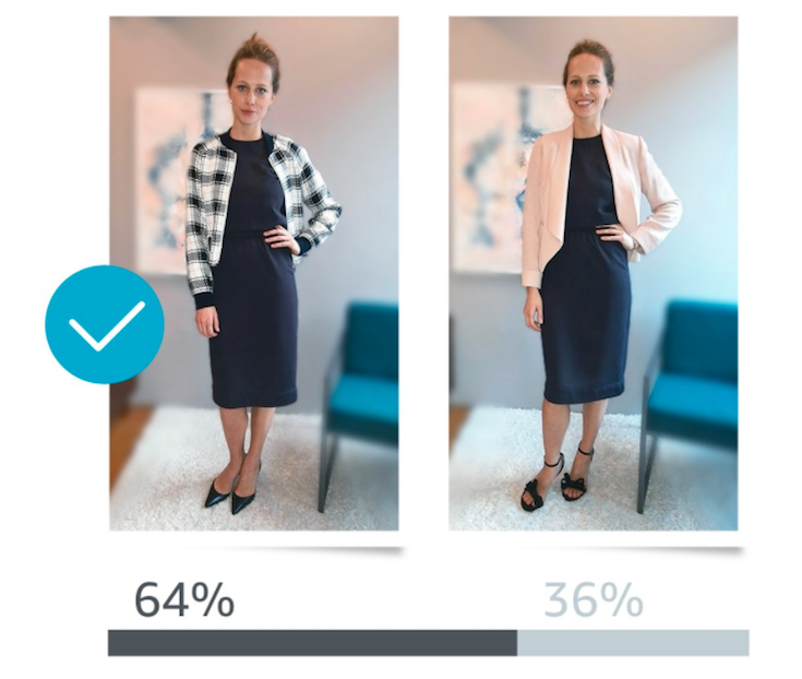 仕組みは、2つの写真を機械学習アルゴリズムとファッション専門家のアドバイスを利用して、フィッティング、カラー、スタイリング、現在のトレンドに基づいて、どのファッションがユーザーにとってよく見えるかをアドバイスするというもの。時間が経つにつれて経験豊富なファッションスペシャリストのチームからフィードバックを得て、アドバイスの精度はよりスマートになるという。