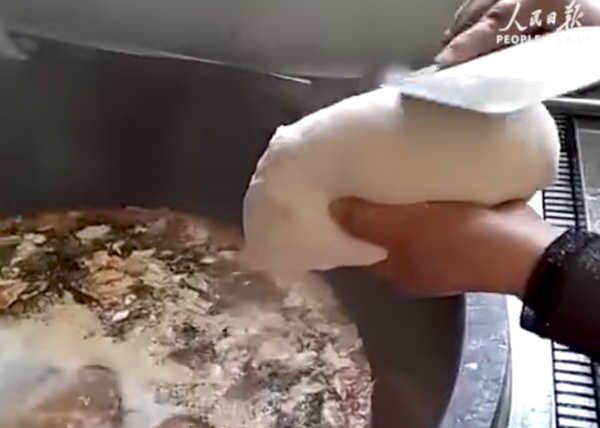 刀削麺は中国北部の伝統的な麺で、ナイフで削っていくのが特徴です。通常職人が一定のリズムで麺を削っていきます。