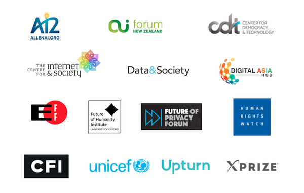 Human Rights Watch、Leverhulme Centre for the Future of Intelligence、UNICEF、Upturn、XPRIZE Foundation
