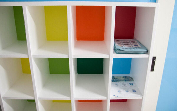 こちらが前述した6つの施策の中の一つ「チラシの常設」の為、アトリエの外に設置されたチラシを入れることが出来るボックスです。