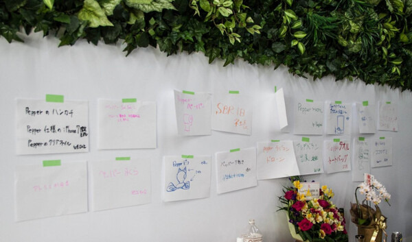 記念写真撮影後、新たな「Pepperグッズ」についてアイデアを書いて張り出していきました。