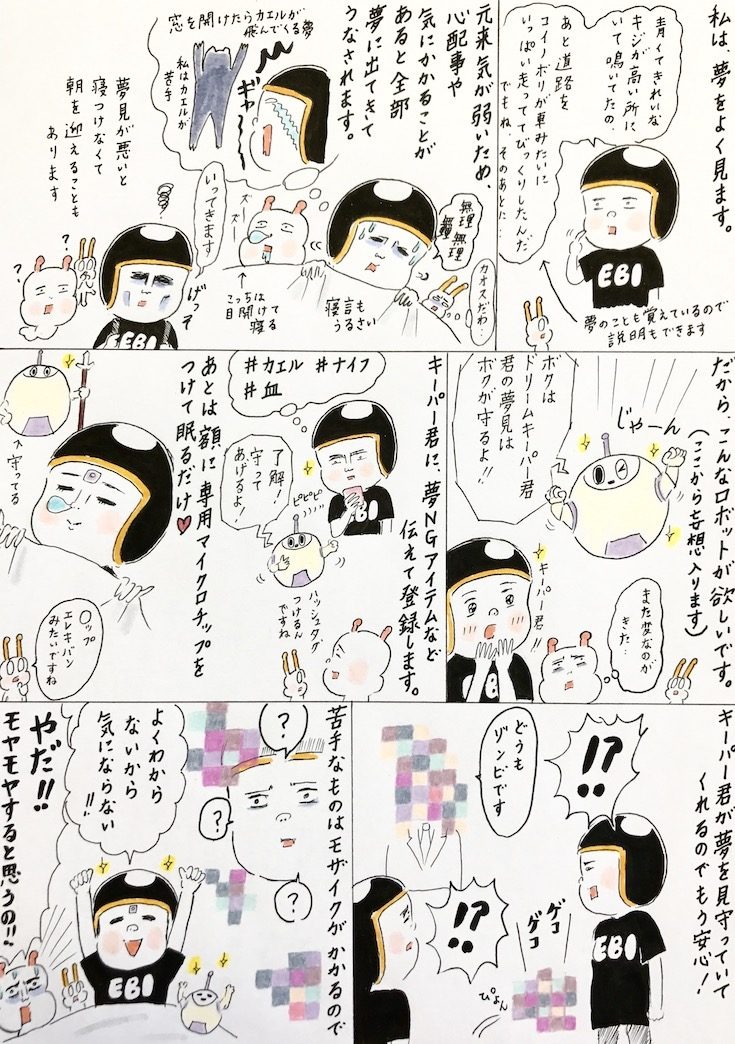 これは、テクノロジーに疎い文系の私EBIが、恐る恐る? ロボットと触れ合いながら、ロボットと仲良くなっていこうとするマンガです。 EBIのマンガ連載:ロボットはこわくないスマホの方はクリックで拡大できるようになります次回は5月31日(水)の更新を予定しております。