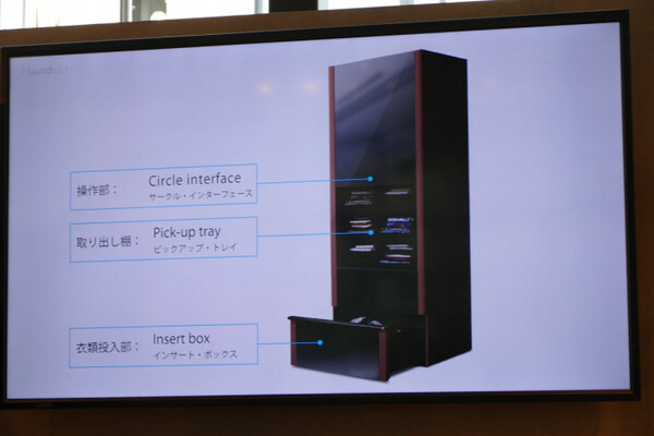 ランドロイドはこれまでは「全自動で衣類を折りたたむ機械」という機能を主にアピールしていた。だが、今回改めてそれだけではなく、本体とスマホアプリを使って衣類をオンラインで記録・整理する「オンラインクローゼット」と、衣類の使用頻度の傾向からこれまで着たことがないコーディネートを提案する「衣類コンシュルジュ」などの機能を持つ、新たな機械であると紹介された。いわば「衣類と人との新しい関係を作ってくれる機械」だという。