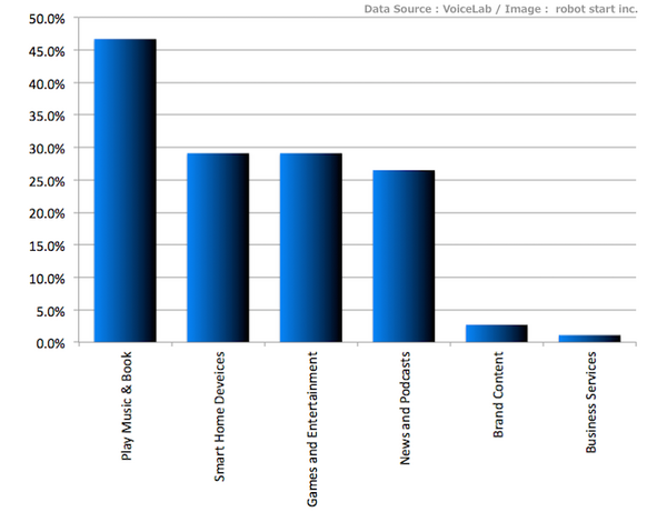 以下は、2016年12月に発表された「VoiceLab」による「スマートスピーカーで好きなスキル」について調査した結果だ。