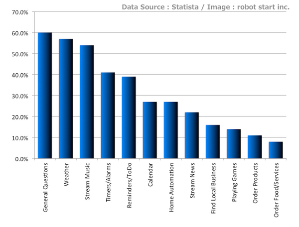 こちらは、2017年第1四半期の「Statista」による「スマートスピーカーの利用用途」に関する調査結果。