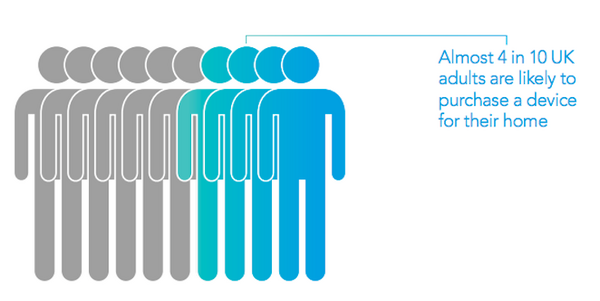 現在、イギリスの成人の40%がEchoを購入予定であり、さらに87%は12ヶ月以内に購入予定と答えたという。このことから、2018年初めまでに世帯普及率が40%を超える可能性があることを示している。