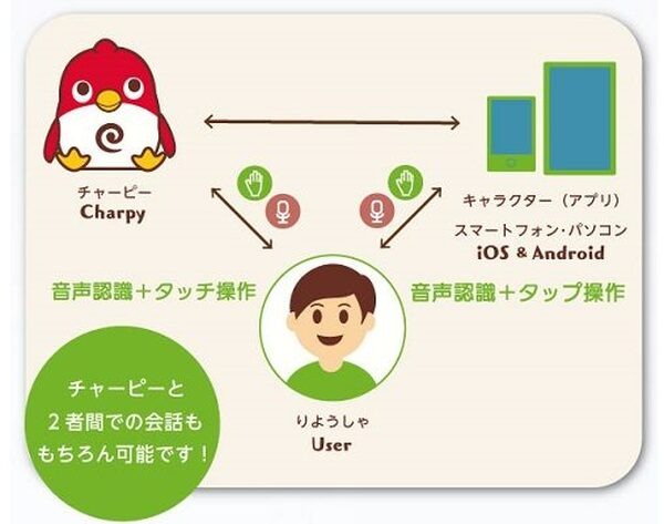 その際、チャーピーは先生のようなサポート役となり、あいづちを打ったり、会話の橋渡しをしたり、自分も会話に加わったりと、より現実的で、話題豊富な会話練習が可能。