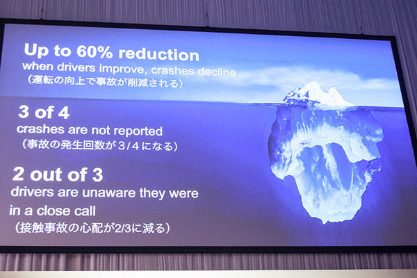 更に「ほとんどの時間が使われていないクルマを、多くの人と共有することによって社会はもっと効率的になりますが、今の状態でも運転の向上によって、事故の発生件数は3/4になると考えています。どこに渋滞があって、どのように運用すればよいかをビッグデータから解析するNAUTOシステムを活用することによって、約10~20%が効率化できると私達は考えています」と続けた。