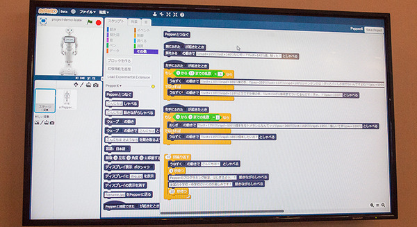 ソフトバンクグルーブはソフトバンクワールドの特設ブースにて、「Pepper社会貢献プログラム2 スクールチャレンジ」に向けた、Pepper用のスクラッチベースとなるプログラミング・ソフトウェアを公開した。子供たちにMicrosoftのSurface等で、Pepperプログラミングの楽しさを学んでもらうことがねらいだ。