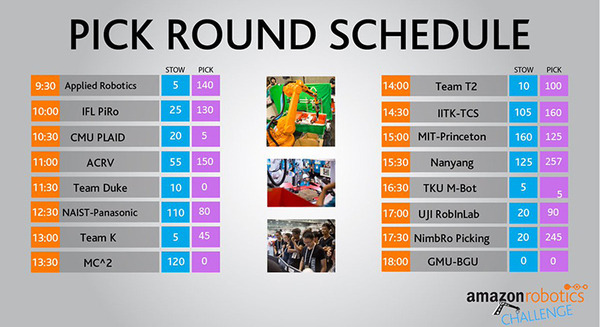 Amazon Robotics Challengeの大会2日目はピックタスク(棚入れ)が行われた。
