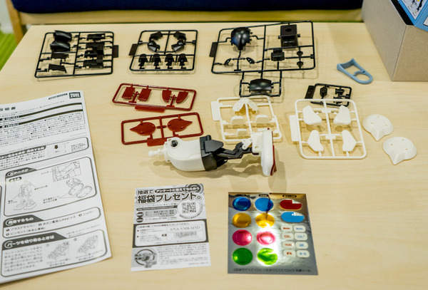 胴体に手や頭を取り付けて、胸にステッカーを貼って完成です。
