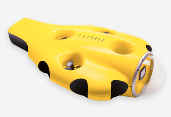 魚型のデザインの水中ドローン。尾びれを動かすことで進む仕組みにより、55デシベルの音しか出さないのが特徴になっている。自動バランス、障害回避、復帰機能を備える。