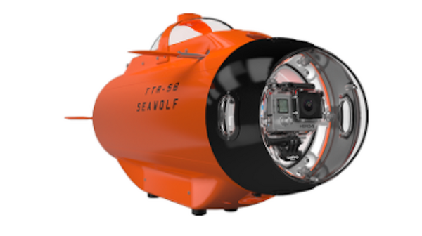 水中でダイバーを自動追尾し自撮りしてくれる水中ドローン。ダイバーを自動追尾する自動撮影モードだけでなく、専用の腕時計型のコントローラによるマニュアルモードによる操縦も可能。