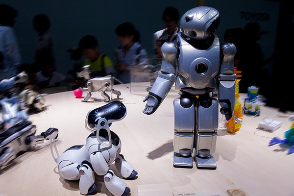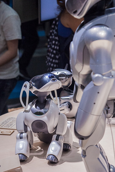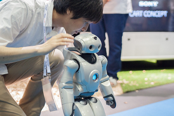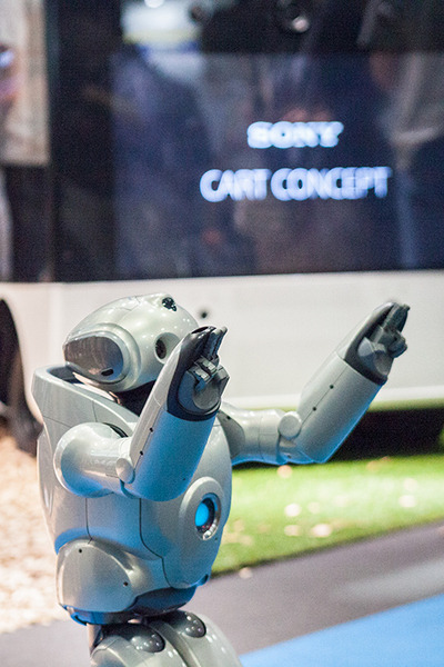 ソニーのロボットと言えば「AIBO」ですが、歴代AIBOと同じテーブルにあってひときわ異彩を放ち、圧倒的な存在感は、当時この姿に憧れた人々にとっては、ノスタルジーを誘うのに十分な再会となったにちがいありません。
