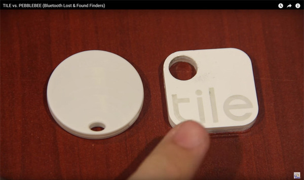 2014年時点で発売していたTILEとPEBBLE BEEの比較動画よりキャプチャ。どちらも大きく、厚いため、「財布の中に入れる。」「ペットの首輪につける」といった使い方は難しそうだ。
