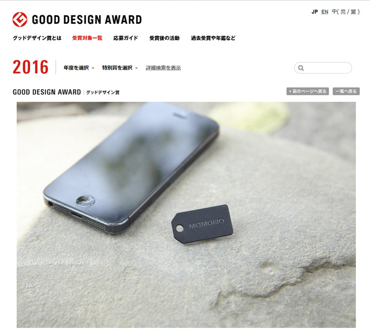 利用シーンを踏まえたサイズに加えて、「お守り」をデザインソースとしたMAMORIOの外装は高い評価を受け2016年度グッドデザイン賞を受賞。