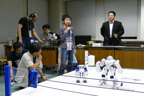 小型の自作ロボットでのバトルを描いた「プラレス3四郎」は、いわば時代を先取りしていたことになる。今大会には原作者の牛次郎氏と、作画を担当した漫画家の神矢みのる氏の両名も特別審査員として臨席。往年のファンたちにはたまらない「御前試合」となった。牛次郎氏は「正直、驚いている。35年で(プラレスのような大会が)できるようになるとは思っていなかった」と語った。