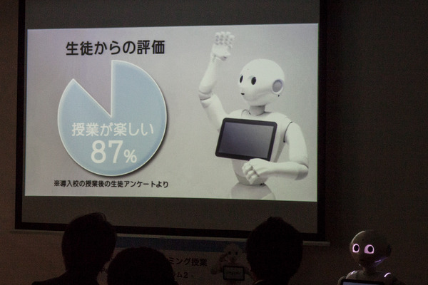 「Pepper 社会貢献プログラム」導入校のアンケートを集計したところ、87%の生徒から「授業が楽しい」との評価を得られたと言う。