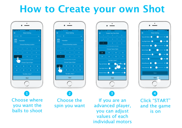 価格は379ドル+送料の「Trainerbot Basic」 (本体、電源、30個のピンポン玉)と $429ドル+送料の「Trainerbot Pro (本体、スタンド、電源、60個のピンポン玉)の2種類。
