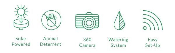 頭の部分がソーラーパネルになっているため電源が不要。そして、360度のモーションセンシングカメラが搭載されています。